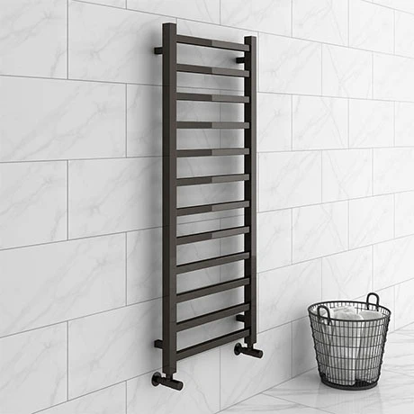 Treat your bathroom to a chic upgrade with Brooklyn’s black heated towel rail. This design features a classic ladder-style shape, but the traditional look ends there. Square tubes and a high-shine black nickel finish set it apart aesthetically, making it ideal for contemporary, minimalist spaces. At 500mm wide, this black towel radiator is slim enough for smaller bathrooms, yet still offers plenty of room for towels.