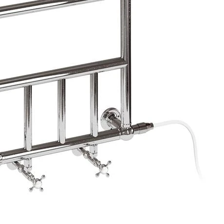 The Chaplin chrome traditional radiator with angled valves & electric Heating Kit, with its classic traditional design this radiator would look great in any period bathroom. Manufactured to the highest standards whilst maintaining the authenticity of the piece.