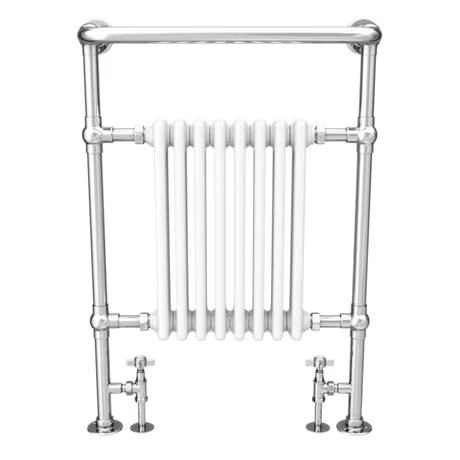 The Chatsworth Savoy Traditional Radiator evokes luxury and timeless elegance with its classic design. Manufactured from steel, it heats quickly and stays warm for longer. This compact towel rail radiator is just 673mm wide, making it suitable for cloakrooms, bathrooms and kitchens where space is at a premium. It features a traditional towel rail that extends over the radiator – hang your towels to dry on it without compromising the heat flow around the room. It’s supplied with two chrome radiator valves with white ceramic caps in the centre of the crosshead handles, perfectly matching the white radiator body.