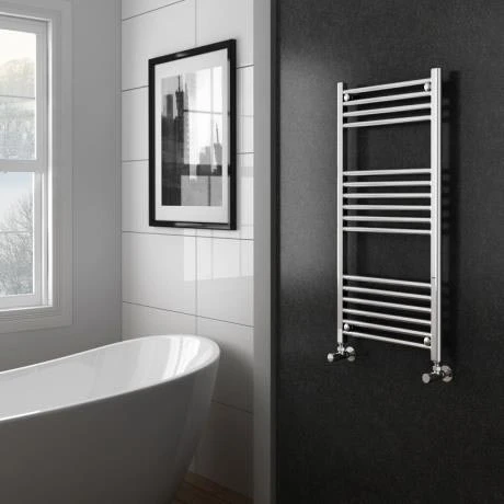 Dry towels efficiently and keep your bathroom warm with this smart Diamond Heated Towel Rail. Finished in highly polished chrome, this 500mm wide ladder towel radiator brings a luxurious sparkle to your bathroom or en suite. The superior quality rail will fit comfortably against the wall thanks to its straight profile – an effective solution for smaller spaces. Expertly crafted from durable steel, this modern chrome ladder radiator is made to last. It even comes with a handy fixing kit for stress free installation.