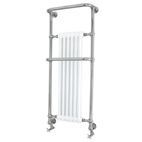 Heritage’s range of heated towel rails complement all types of bathrooms beautifully and range from the classically elegant to modern urban chic. The traditionally styled Cabot Wall Mounted Heated Towel Rail features a steel constructed frame which is plated in a durable chrome finish and a central white enamelled column radiator. This stylish towel rail will add a touch of elegance to any bathroom. Comes supplied with a pair of traditional chrome valves.