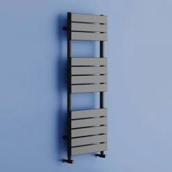 The Milan bow-fronted anthracite designer vertical heated towel rail features an innovative modern design, manufactured from durable steel with a quality anthracite finish, this stylish bow-fronted flat panel towel rail provides superb heat output which will gently warm towels and your bathroom or cloakroom.