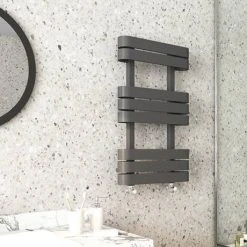 The Milan curved designer vertical heated towel rail features an innovative modern design, manufactured from durable steel with a quality anthracite finish, this stylish curved flat panel towel rail provides superb heat output which will gently warm towels and your bathroom or cloakroom.