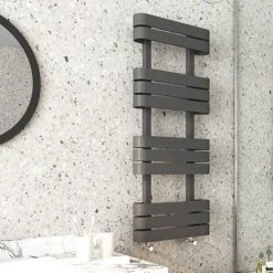 This towel rail is both functional and stylish. The matt black finish is very tactile and adds a touch of elegance to my bathroom. It’s easy to install and heats up efficiently.