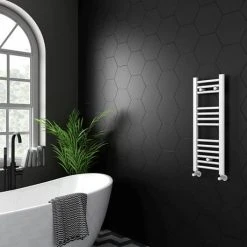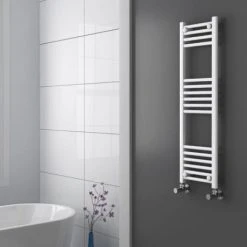 Diamond Heated Towel Rail – W300 x H1000mm – White – Straight