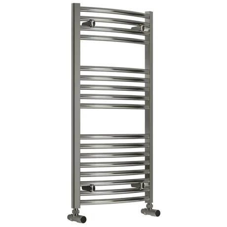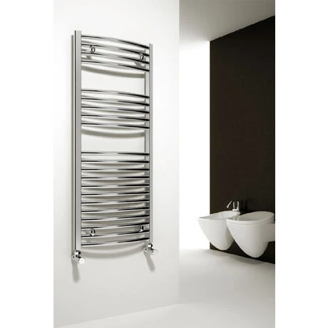 The Diva curved towel rail adds style to any room with its contemporary curved profiled ladder design and extensive choice of sizes. Hand crafted from high grade steel and finished in stunning chrome, each rail is individually leak tested and feature 25mm tubes for improved performance. Each rail comes complete with wall brackets, air vent plug and blanking caps. Comes with a 5 year guarantee against faulty manufacture.