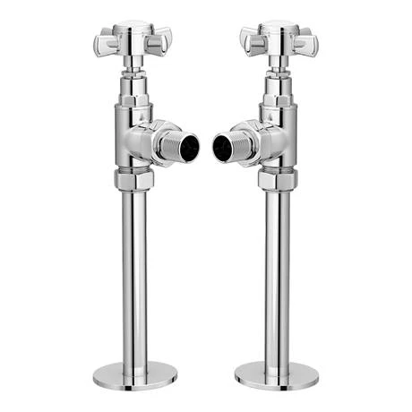 (1) Pair of Traditional Chrome Plated Angled Radiator Valves with Pipes & Concealing Plates
